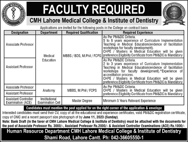 CMH Lahore Medical College Lahore offers opportunities for individuals seeking to contribute to the medical education field. Make sure to follow the instructions mentioned in the advertisement and submit your application before the specified deadline. Good luck with your application!